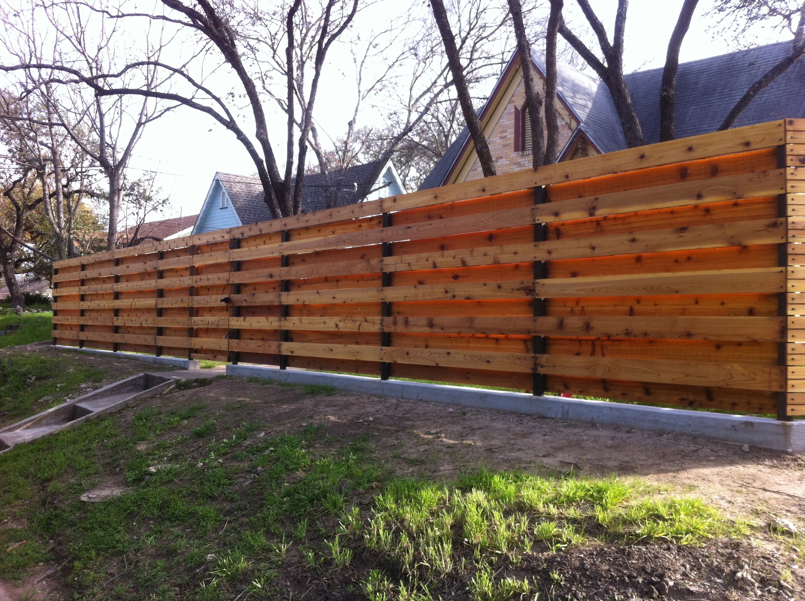 180 ft of fence. Using a 7/8 thick kiln dried cedar and finished out with penofin. It’s base is a brazilian rosewood oil. A retaining wall was built to level up the inside of the yard. Used 11 gauge thick raw steel that was set into the wall. Fence is 6 ft tall.
