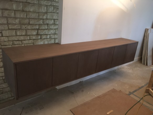 Floating foyer cabinet Posted on February 27, 2016 by bennetthaus Reply Made out of wenge plywood. To be finishe with a satin poly. The back side will accept a backsplash.